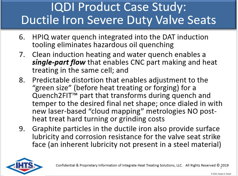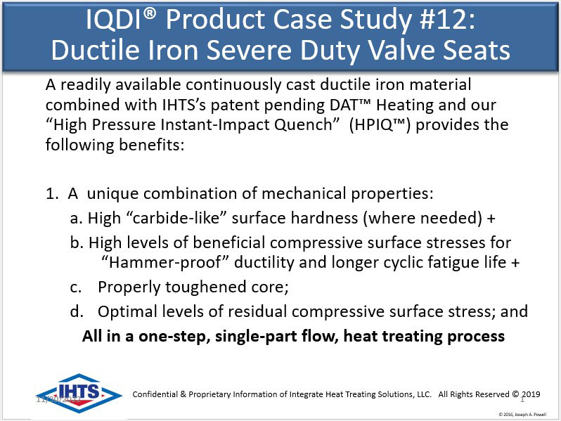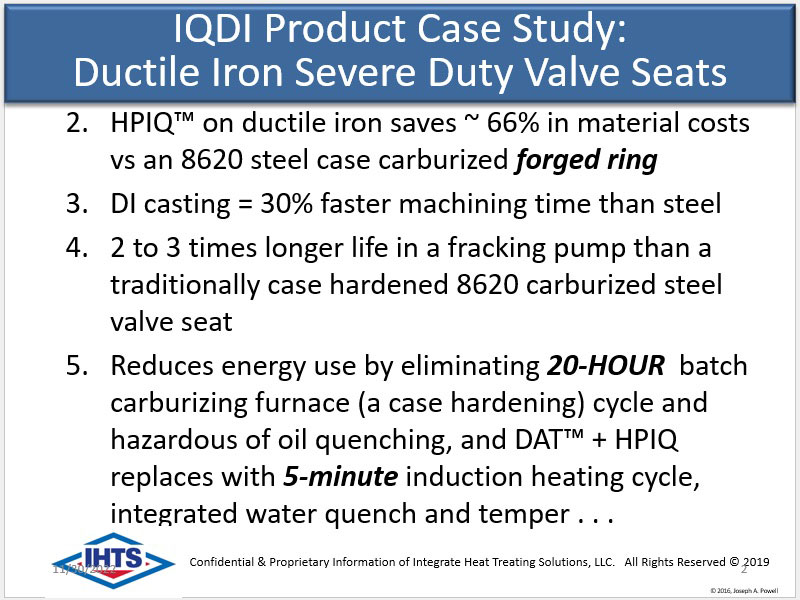 The benefits from an IQDI Product in a fracking pump valve seat are set forth below: